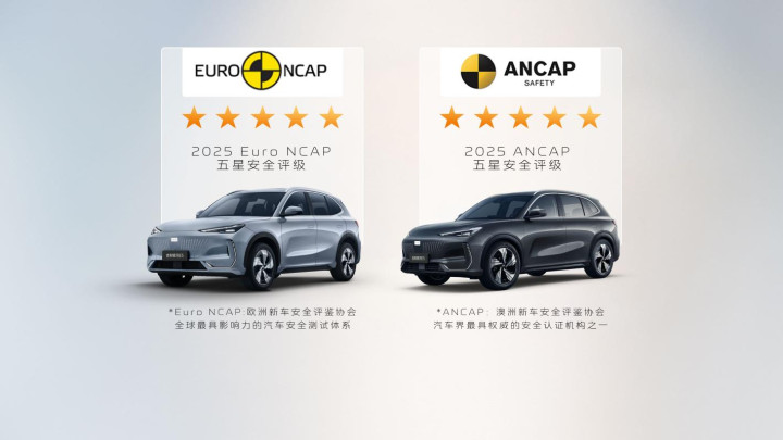 安全始终是吉利造车30年的核心优先级,2026款银河E5搭载的神盾短刀电池堪称“安全标杆”。其不仅提前通过中汽中心新国标检测验证,更经历了8针同刺、5.8mm真弹贯穿等极端试验,甚至承受了36吨59D坦克的极限碾压——试验后电池包仅轻微损伤,无鼓包、泄漏、起火或爆炸现象,安全性能达到军工级水平。此外,新车还通过中汽中心行业首次超国标整车安全魔鬼串联试炼,获得NESTA六维电安全认证,成功挑战50km/h正面中心柱碰超纲难度试验,并斩获Euro NCAP与ANCAP全球双五星安全评级,成为10-15万级中国品牌纯电SUV中少有的“双五星”车型。